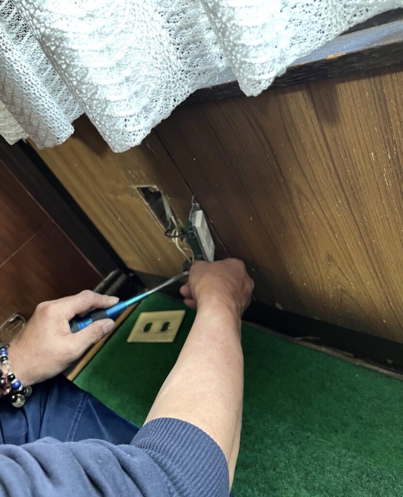 築30年以上のお宅でコンセント🔌を点検して欲しいとのご依頼を受け点検したところ、2階のコンセントが焼けてしまっていて危険な状態でした。どうやら2階の電気の配線が、全部この部分の電線から来ているようです。